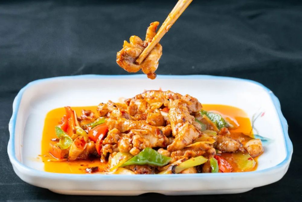 此菜由国画大师张大千先生的自创菜融合烹制而成,以特调酱汁融合调味,在鸡块表面迅速附着,鲜香味浓,回味醇厚。