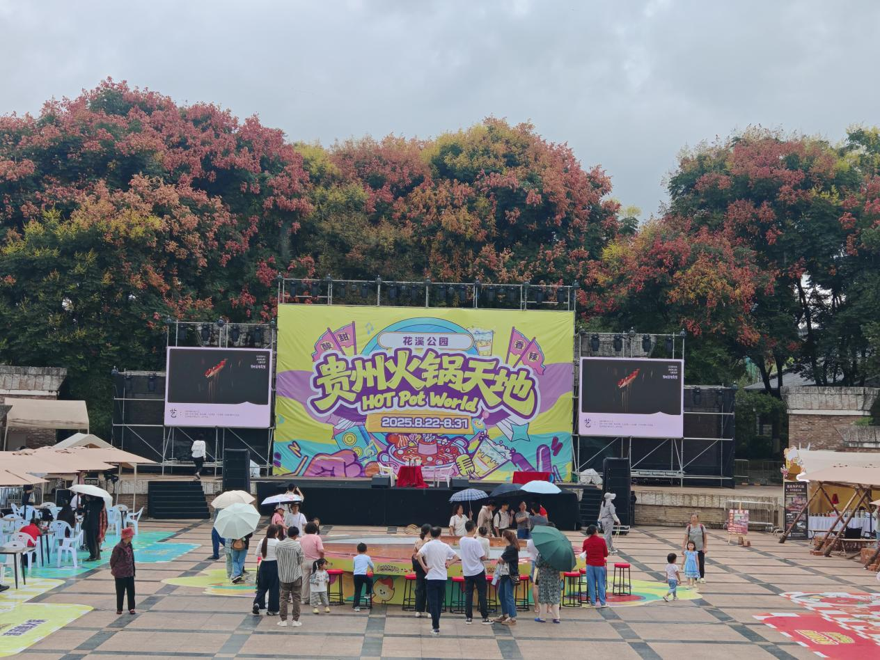 开街当日,花溪公园集结了贵州各地美食,涵盖24类风味小吃,共110余家商户入驻,其中,直径6.5米的巨型火锅项目备受游客喜爱;花溪公园音乐广场与大草坪双主场音乐会同步举办,还推出精酿盲盒评鉴等趣味活动;在文创市集,推出蜡染、苗银等非遗体验项目;活动还整合了花溪公园周边资源,在溪畔·乡贤里打造“辣”主题美食街区。