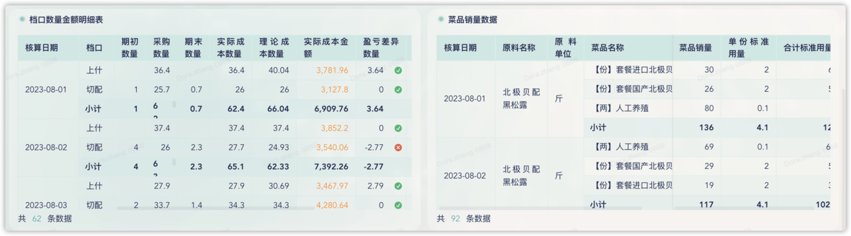 通过建立“菜品类别—菜品—品项”的利润核算模型,将利润核算到每一道菜品,并结合销量、成本、退单、库存等数据,输出菜品损耗排行、利润排行、绩效排行,形成可指导决策的菜品成本利润分析。