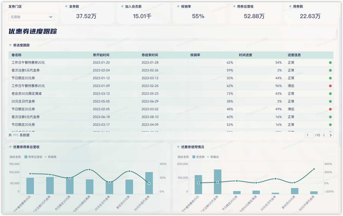 系统能够实时追踪优惠券的发放与核销情况,并通过图表对比不同活动的营收贡献,帮助总部快速评估执行效果,及时优化不理想的方案。