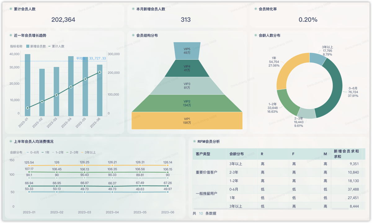 九数云整合POS交易、线上平台、会员系统和营销渠道数据,建立统一ID体系,对会员规模、复购率、生命周期价值进行全维度监控,为总部的精准营销和品牌发展提供依据。